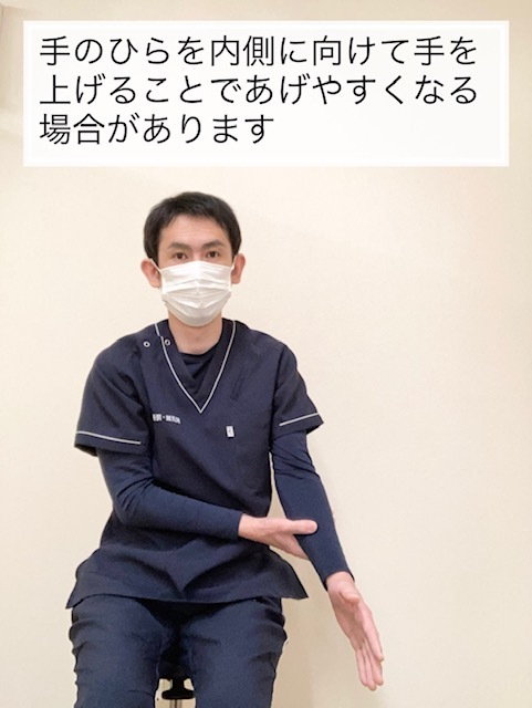手を上げる運動をするときに、手のひらを内側に向けて上げてみて下さい。