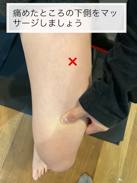 マッサージの注意点は打撲したところは直接マッサージしないということです。