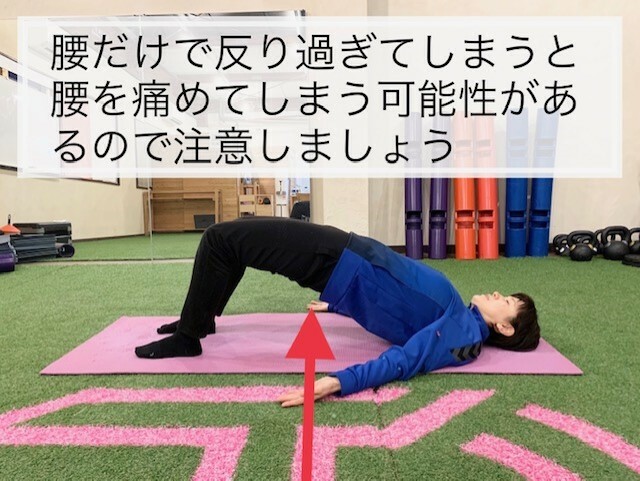 *腰だけを反って上げないように注意しましょう