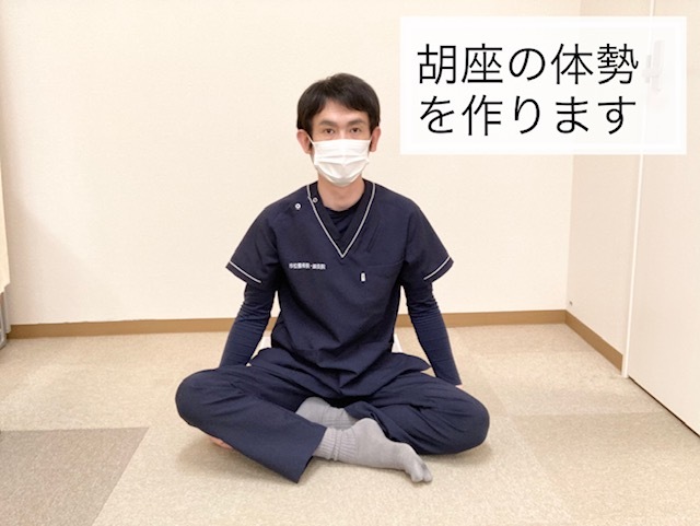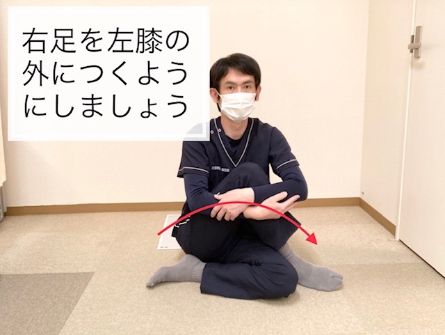 胡坐の体勢から片方の足をもう一方の足の外側へ回してつきましょう。