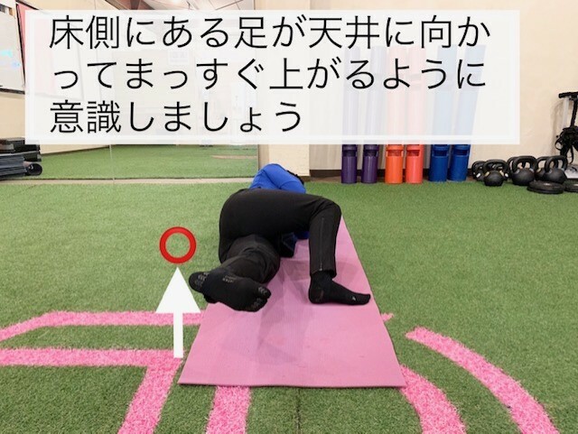 ※注意ー鍛えたい下の足が前に行かないように注意し、体からまっすぐ伸びるように意識してください。