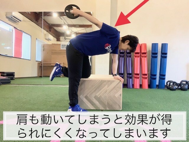 ポイントー腕を後方に上げすぎて肩から後方に動いてしまわないように注意してみてください。