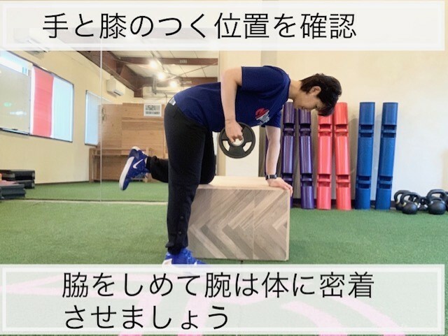 ポイントーこの姿勢を作った時に背中が丸くならないようにしてください。
