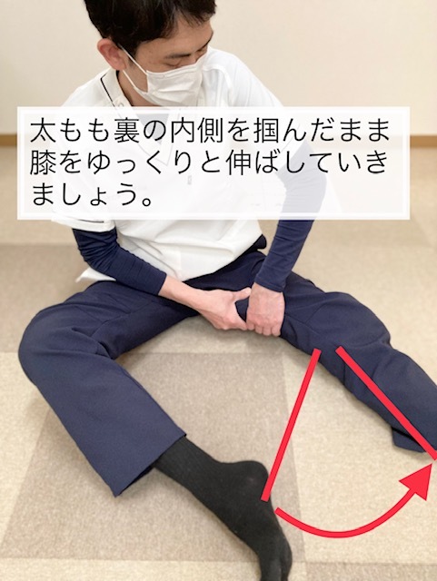 今回、ご紹介するマッサージに取り組んでいただくことで、膝を伸ばすときに突っ張ってしまう太もも裏の筋肉の働きを改善し、膝を伸ばすときの痛みを軽減することができます。