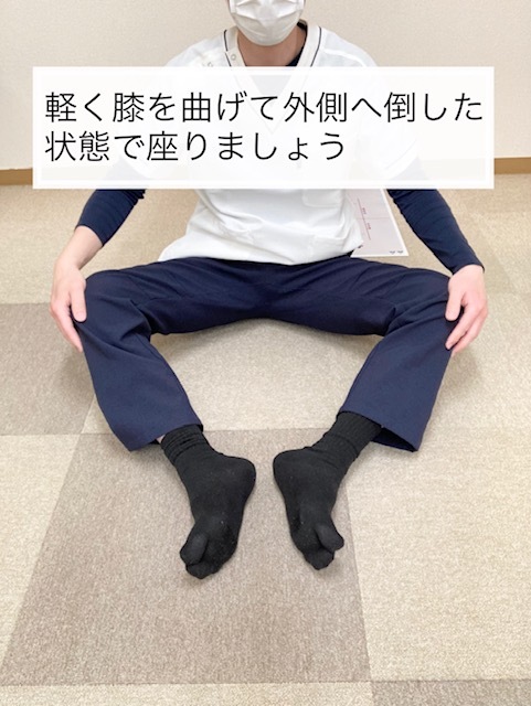 軽く膝を曲げて少し外側へ倒した状態で行います。