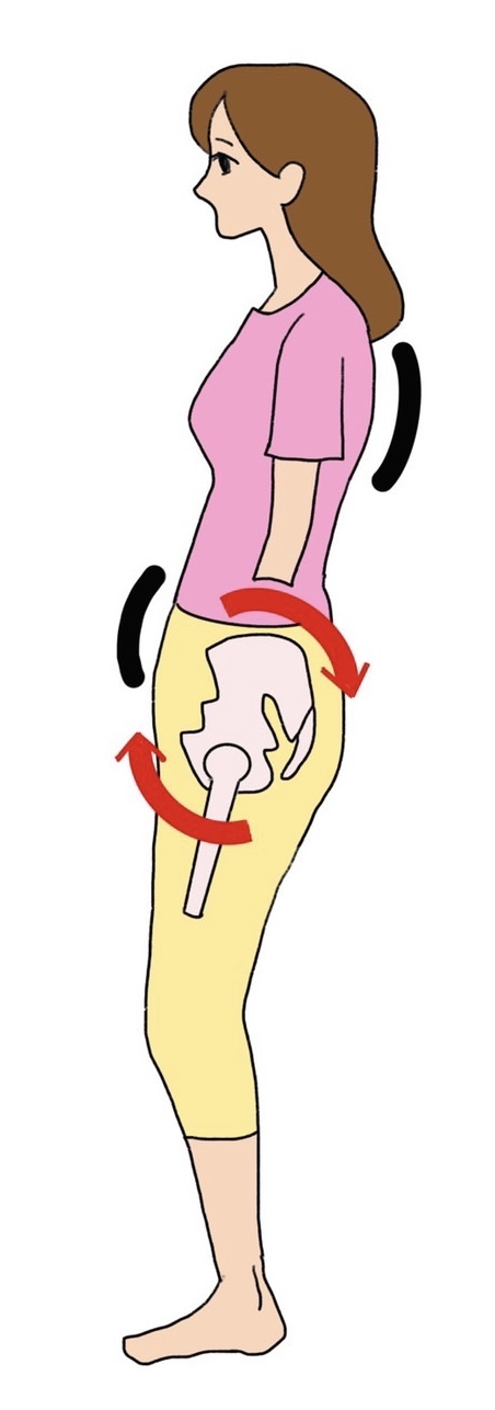 また、股関節の動きが硬くなってしまうことで骨盤の傾きも強くなり、いい姿勢を保つことができない状態となります。