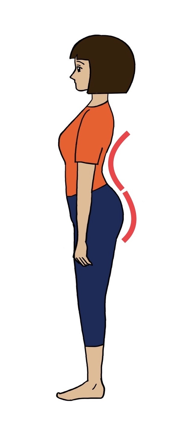 つま先の向きが内を向いている場合は、骨盤が前方へ倒れやすく腰から背中を反らした姿勢となってしまいます。