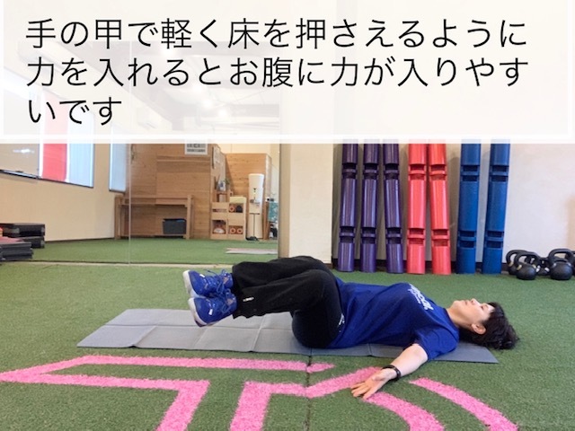 腰の骨を床に押し付けるイメージで行ってもらうといいでしょう。