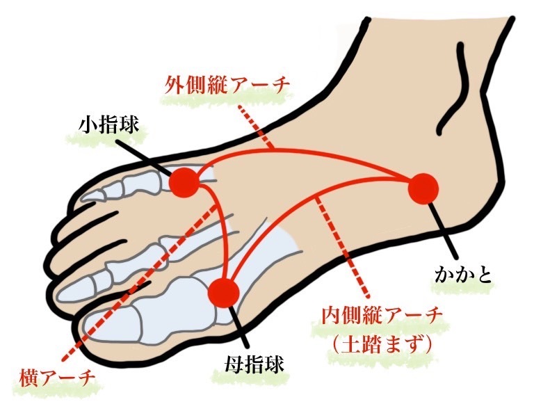 このアーチがあることで、足裏が地面につくときにクッションのような役割をしてくれています。
