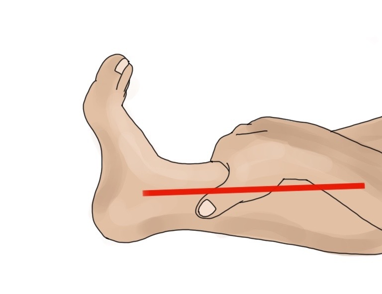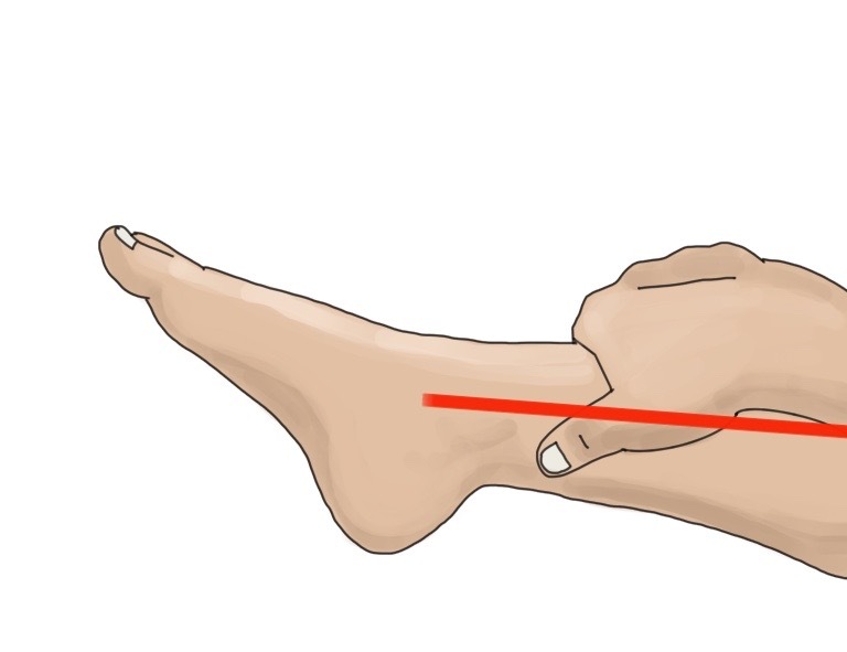 足首を下に向けた状態にして、うちくるぶしの少し上側を押さえます。