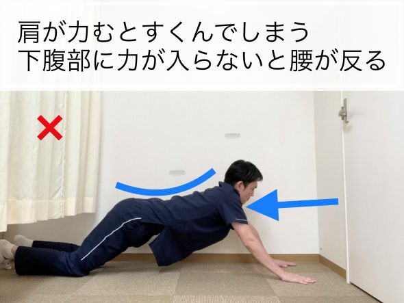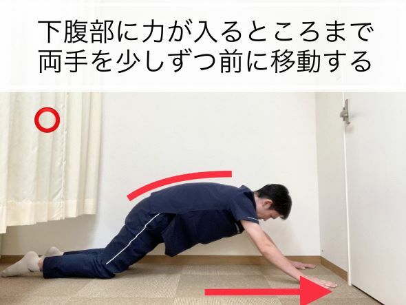 ②四つん這いの体勢がとれたら、床についている手を少しづつ前に移動いていきましょう