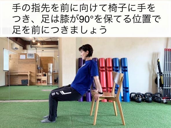1.手の指先を前を向いた状態で椅子に手をつきましょう。