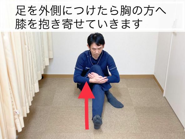 移動ができたら胸の前あたりにある膝を胸の方へ抱き寄せるように近づけましょう