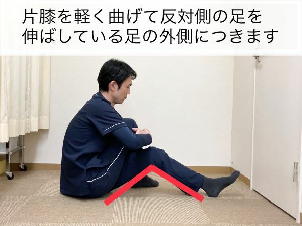 そこから、右の足を左足の太ももの外側へ移動します