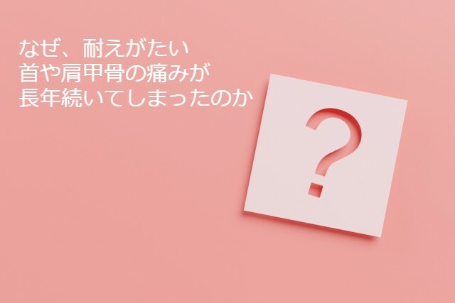 首から肩甲骨におこるムチウチのような痛みで長年にわたりお悩みだった患者様のお話