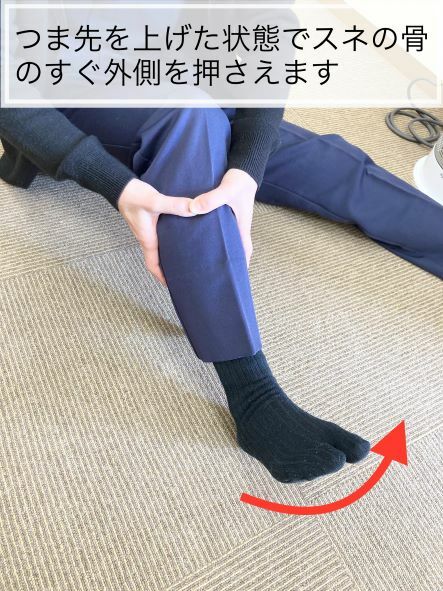 ・膝のお皿の下にある骨から少し外側を押さえましょう
