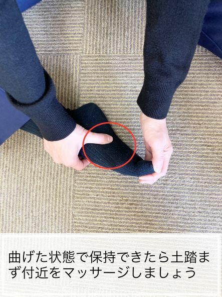 ・曲げた状態のまま土踏まずを軽くマッサージをしてあげましょう