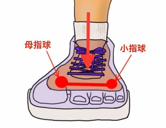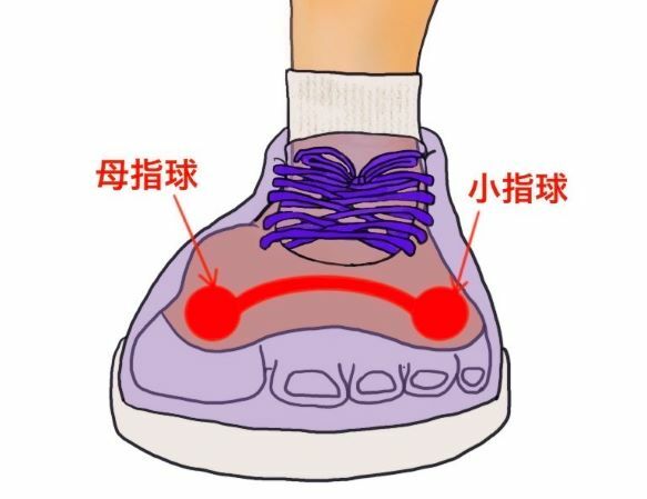 ↑紐靴の↓部分を強くしめすぎると母指球(親指の付け根)と小指球(小指の付け根)の間を上から押しつぶしてしまう力が加わり、母指球(親指の付け根)と小指球(小指の付け根)をつなぐ横アーチがなくなってしまいます。