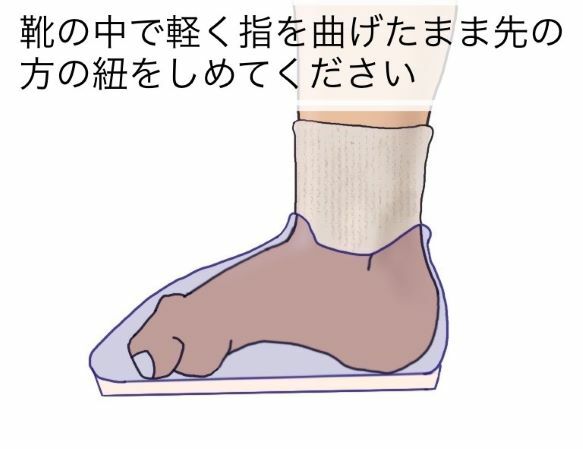 次に足を入れてから足の指を軽く曲げた状態にしてください。グーをした状態ですね。
