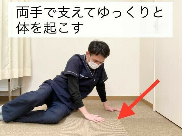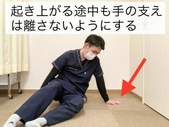・最後の最後まで支えている手に力が入ったまま起き上がってください。