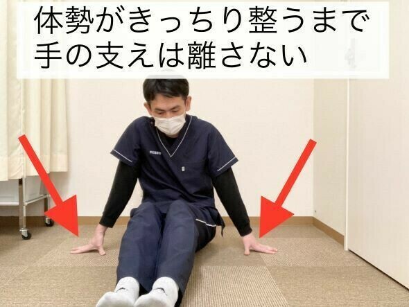 最後にふっと気を抜いてしまうと急な痛みが走る可能性がありますので、座った体勢になるまでしっかりと支えて座った体勢になってから5秒ほど経ってから手を離すようにしましょう