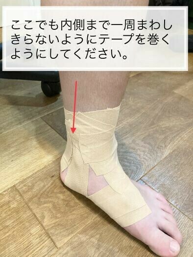 ※③にテーピング方法を書いておりますので参考にしてください。寝る時はテーピング以外にも包帯などで大丈夫です。