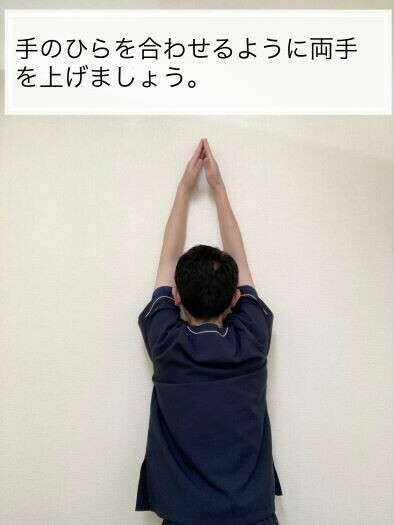 手のひらを内側に向けた状態で両手を大きく上に上げていきましょう。