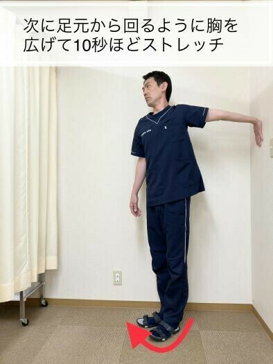また、このストレッチでは腕のねじりを解消することもできるので巻き方や猫背といったような姿勢にも効果があり、肩こりの改善にも役立てていただけると思います。
