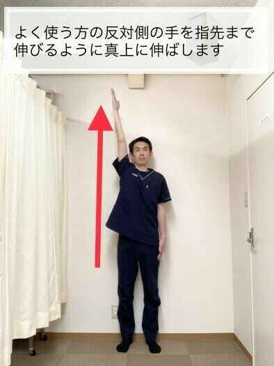 ・左側に軸がある場合は、反対側の右手をまっすぐ上に上げます。
