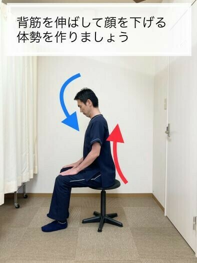 この姿勢と普通に座っている姿勢を交互にゆっくりと5回ほど繰り返してください。