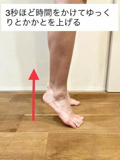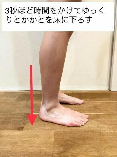次に踵を下ろすときも3秒ほど使ってゆっくりと下ろしていきます。