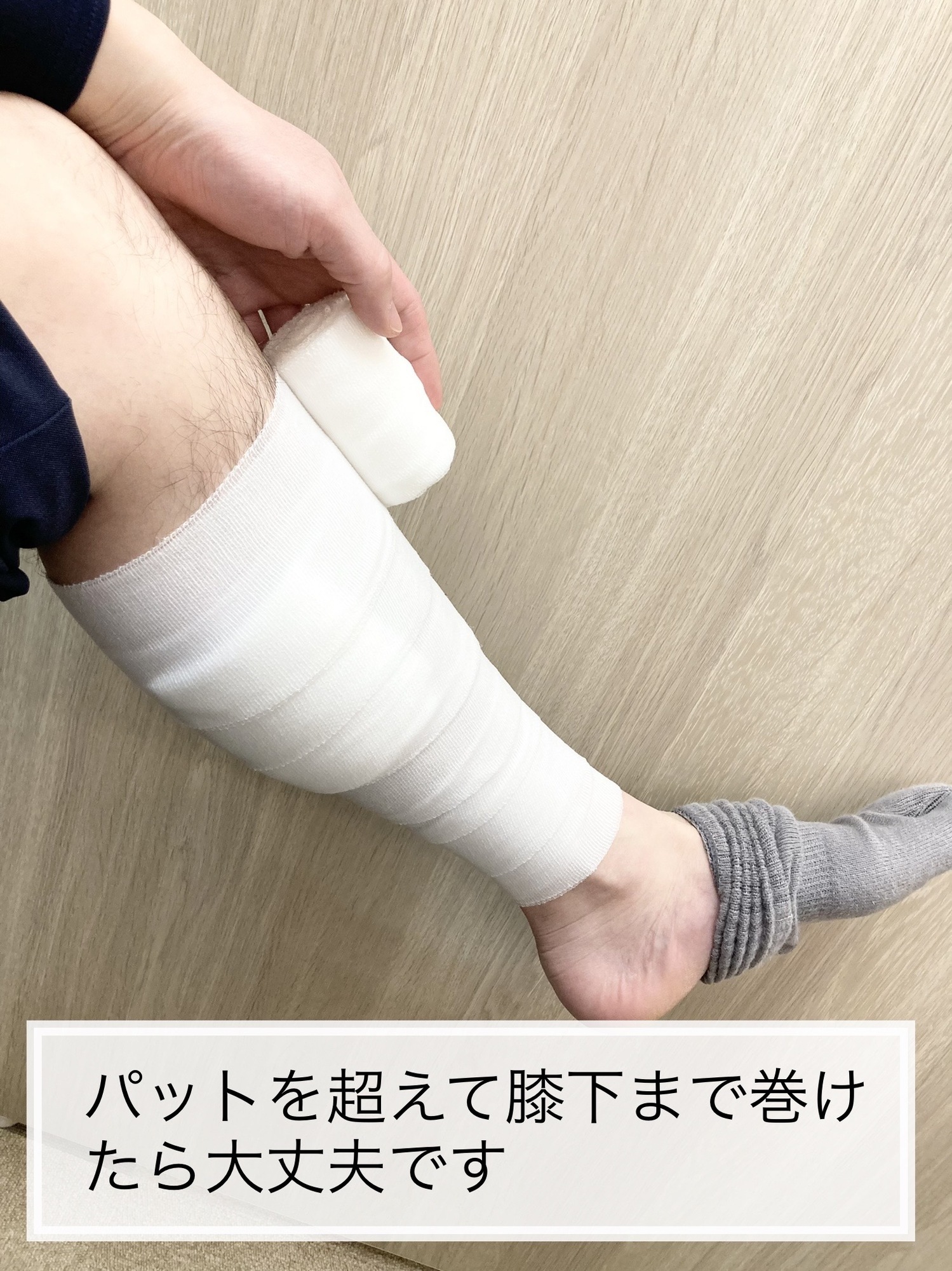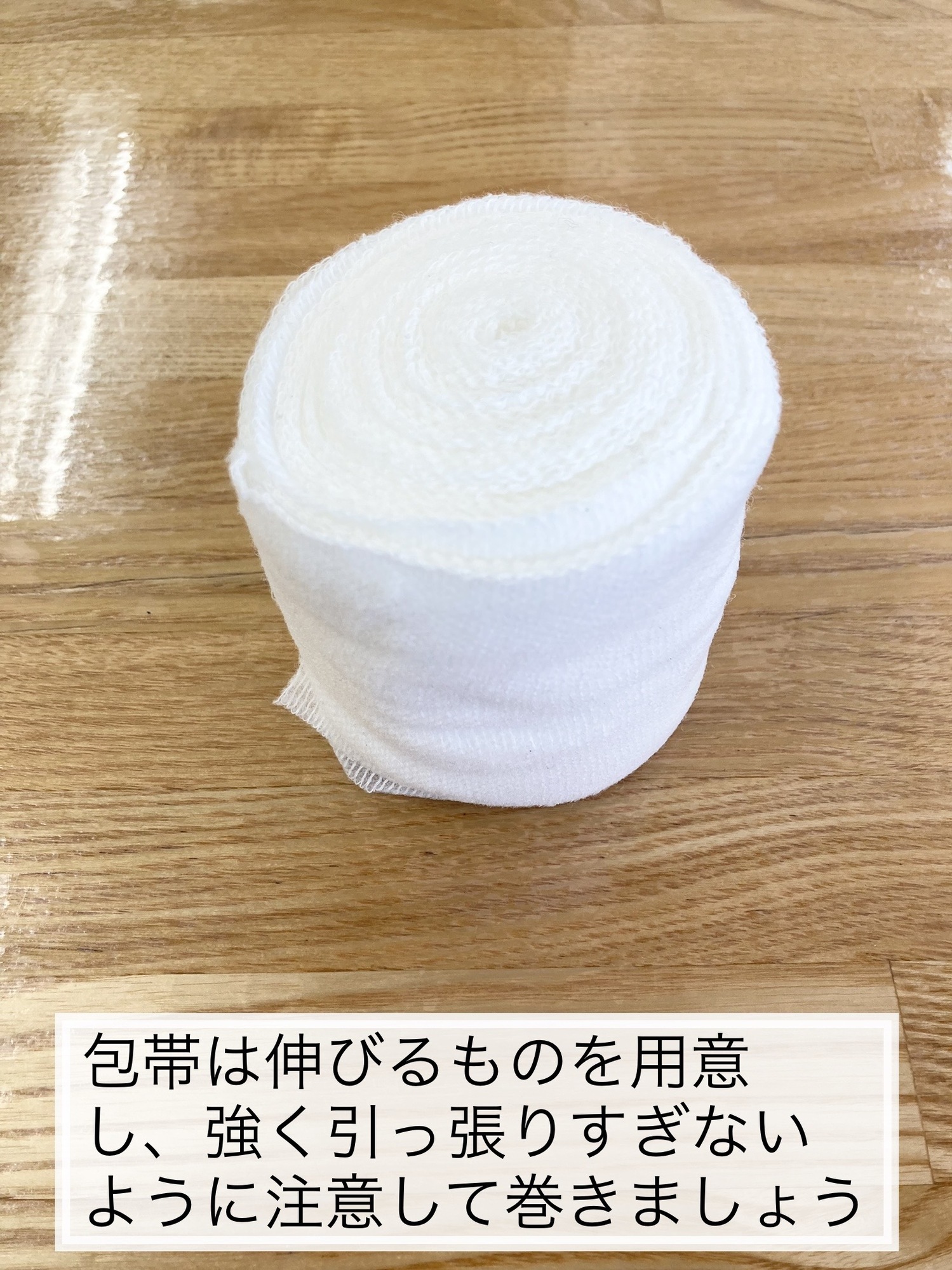 ドラックストアで売っている包帯は短いので2巻くらい購入してもらうことをお勧めします。