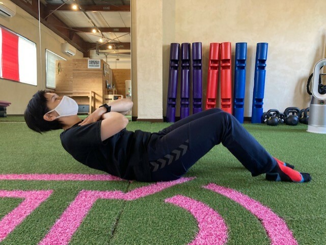 背中が伸び切って腹筋運動をしてしまうと腰を痛めてしまいますので注意しましょう。