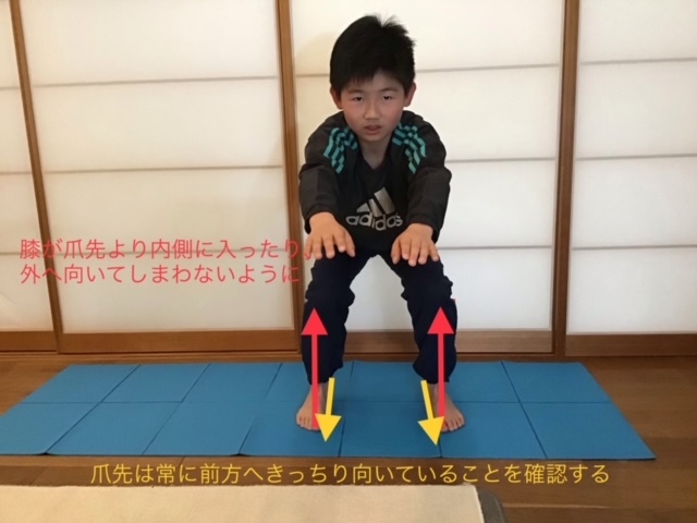 また、つま先と膝の向きが同じ方向に向くように注意しましょう