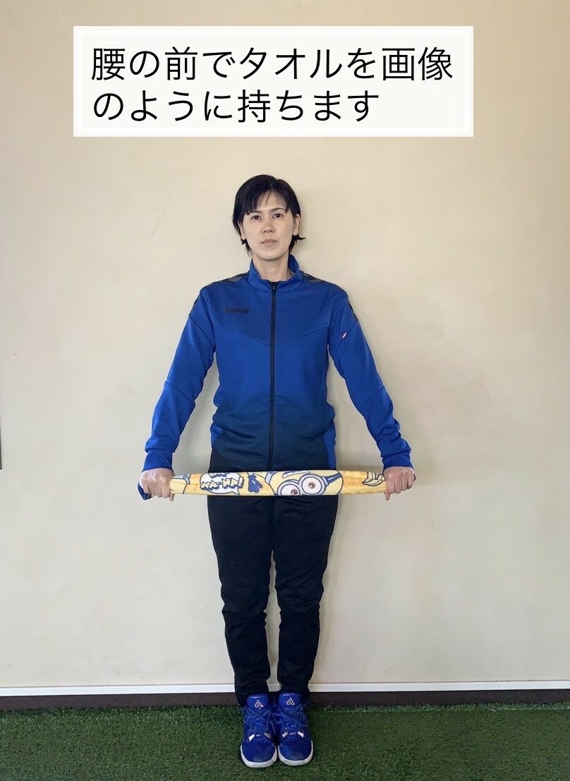 タオルを腰の前に持ち上下に10回程度動かしてみましょう。