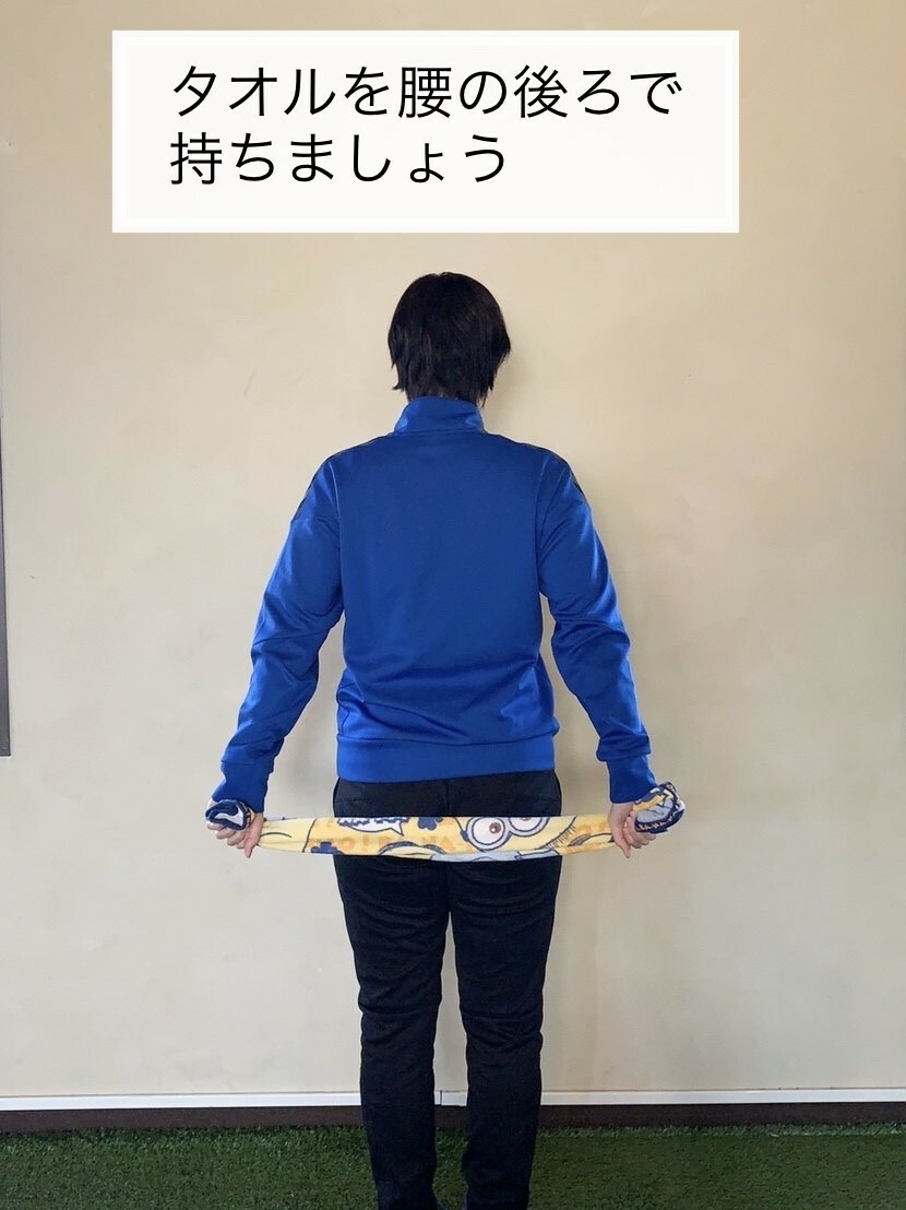 タオルを腰の後ろに持ち上下に10回程度動かしてみましょう。