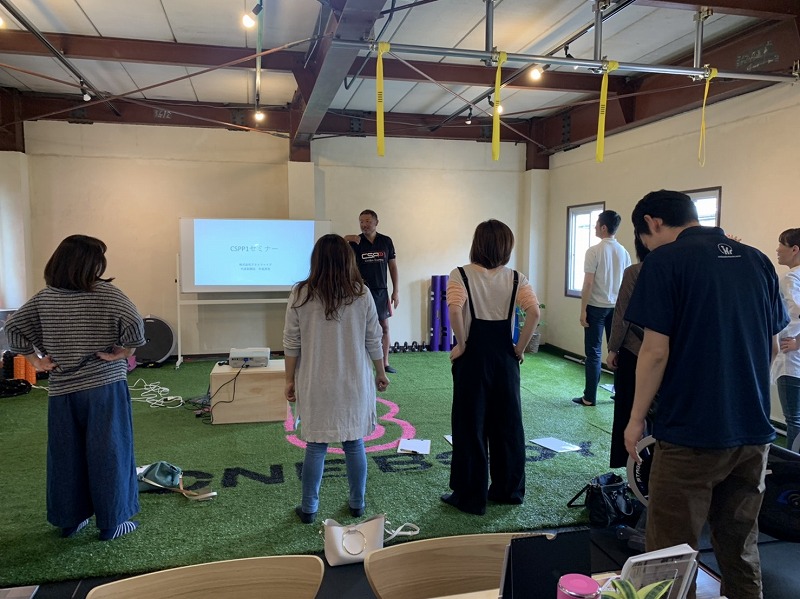 お客様が運動しやすいよう環境づくりにもこだわっております。床は緑の芝生になっているため、草原の上で運動している気分になります。
