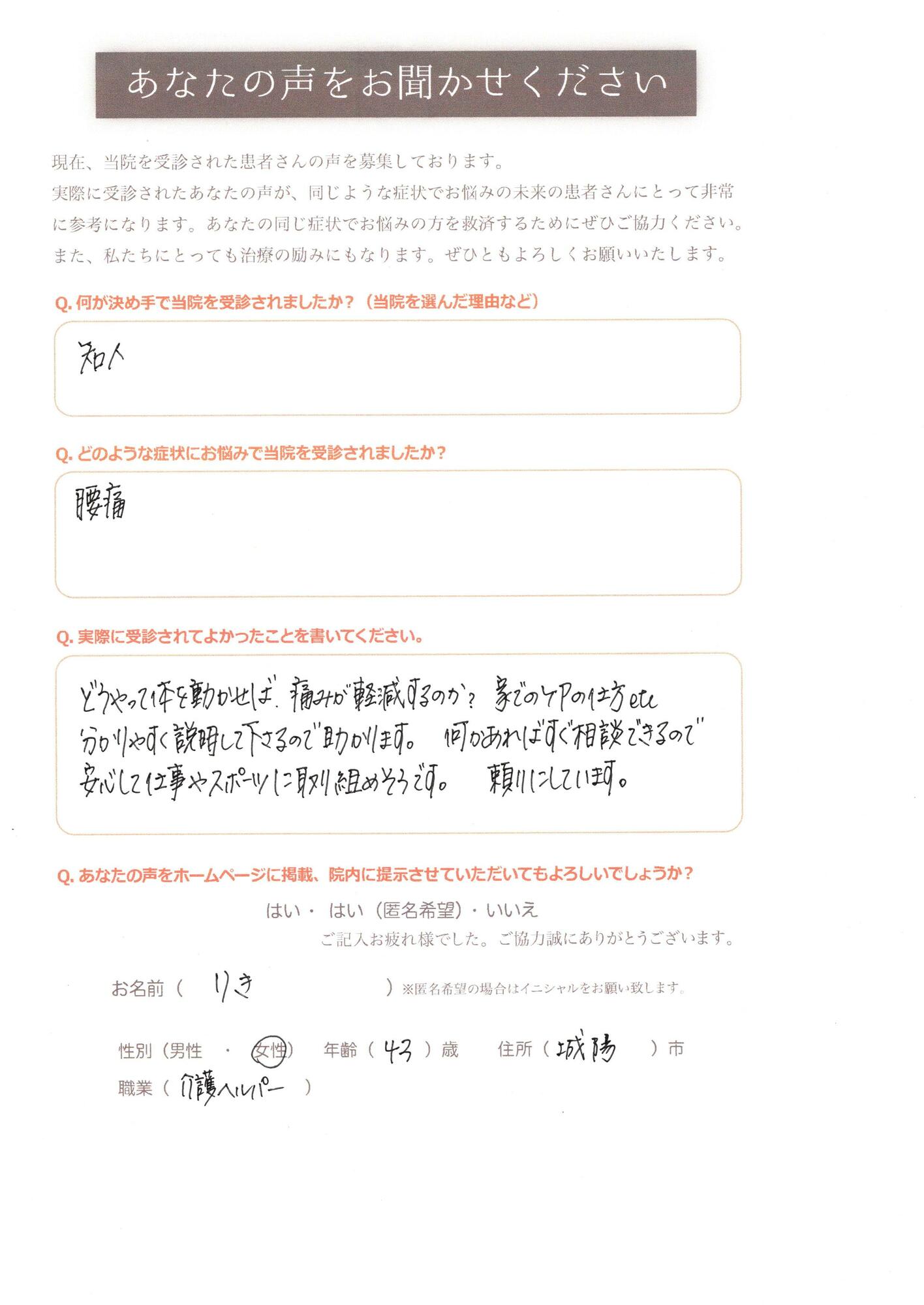 当院では辛い腰痛でお困りのお客様を改善へと導きます。