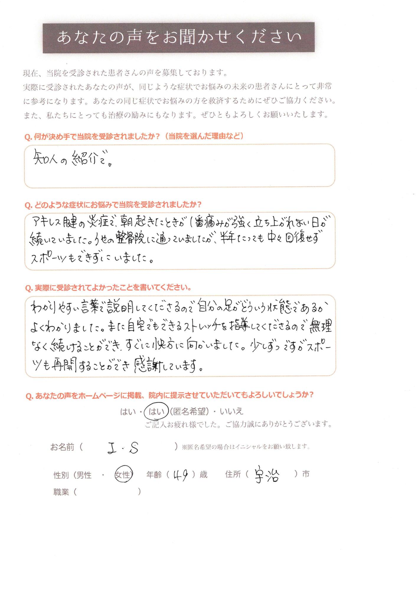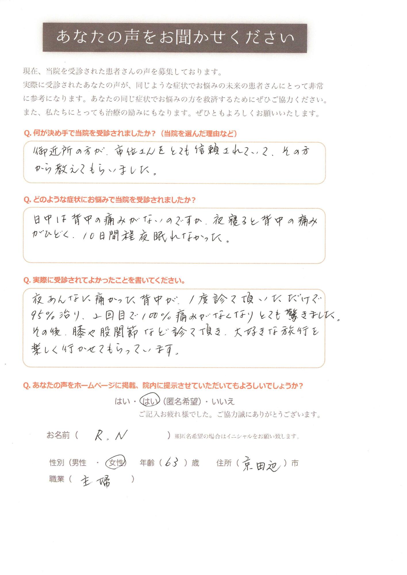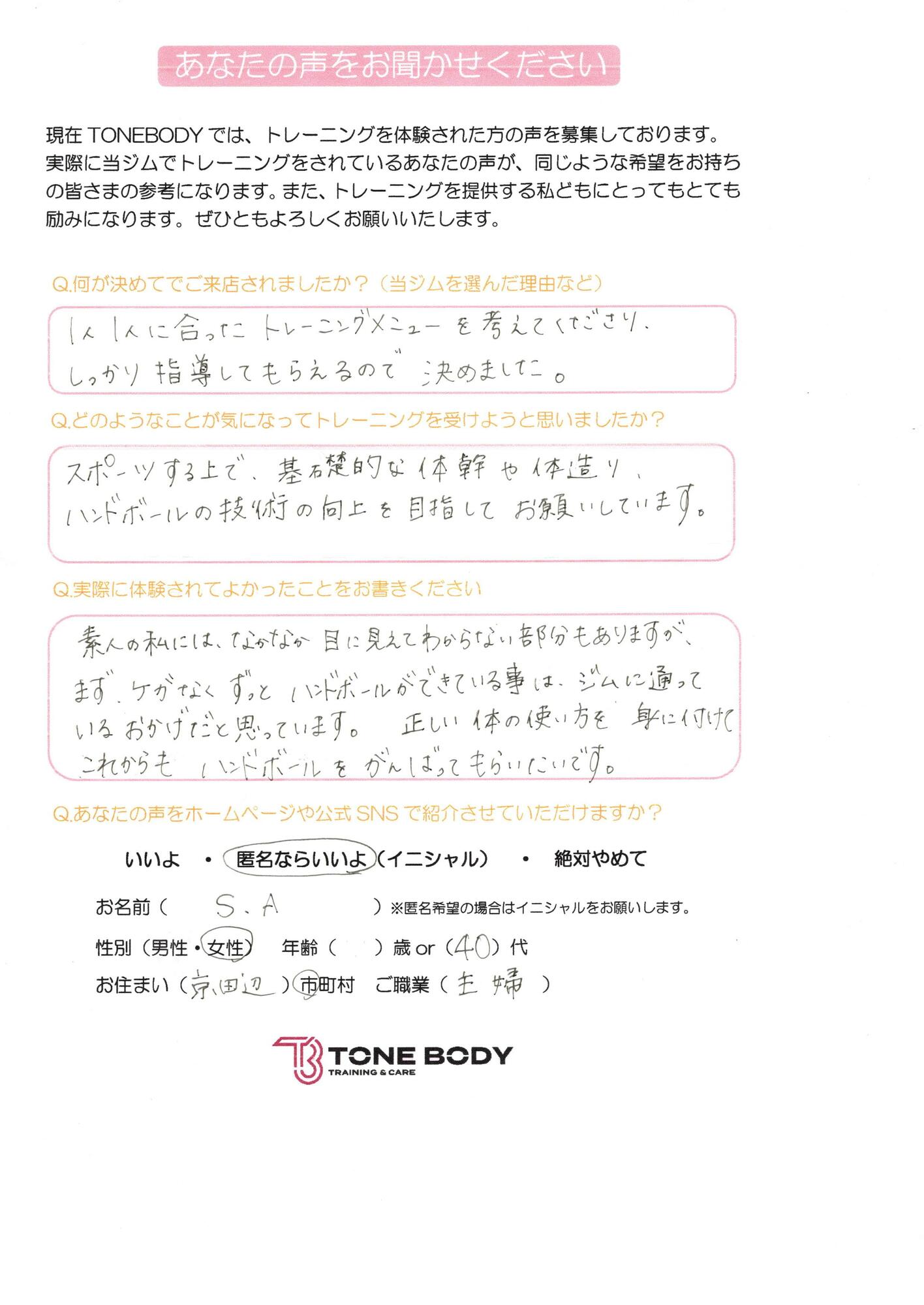 お客様の声|京田辺市の大住駅近くの市位整骨院・鍼灸院、新田辺駅近くのTONEBODY